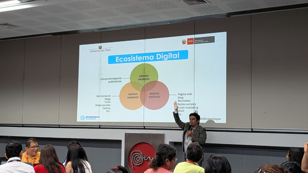 El segundo módulo fue uno de los momentos centrales de la jornada. Ronald Barzola abordó un desafío recurrente en las MYPE: la ausencia de metas comerciales estructuradas y la dispersión en el uso de canales digitales.